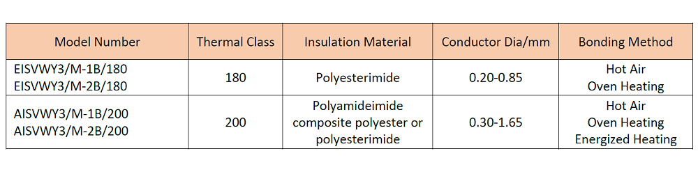 AISVWY3/M-200, Hot Air Bonding Enameled Copper Round Wires of Class 200, Polyamideimide composite Polyesterimide Self-adhesive Enamelled Wires Specially for Motors, Electromagnetic Clutches & Brakes